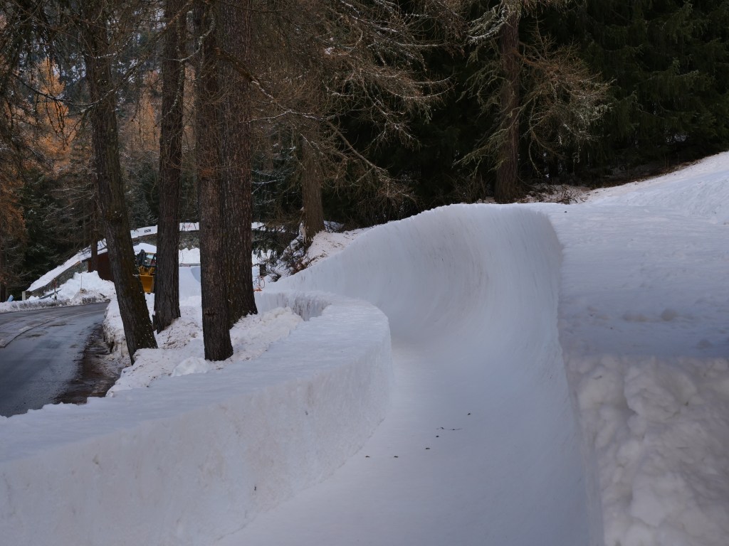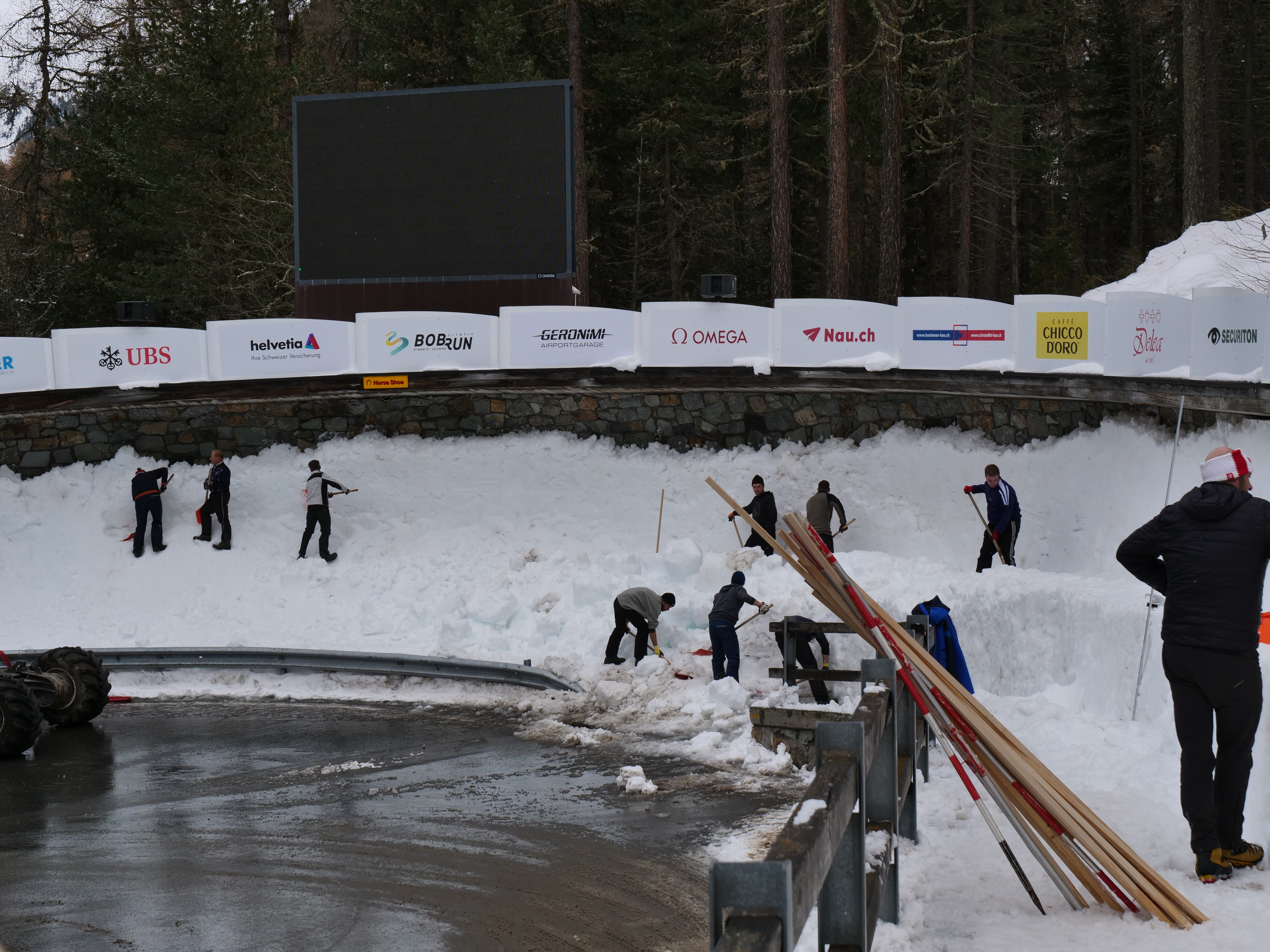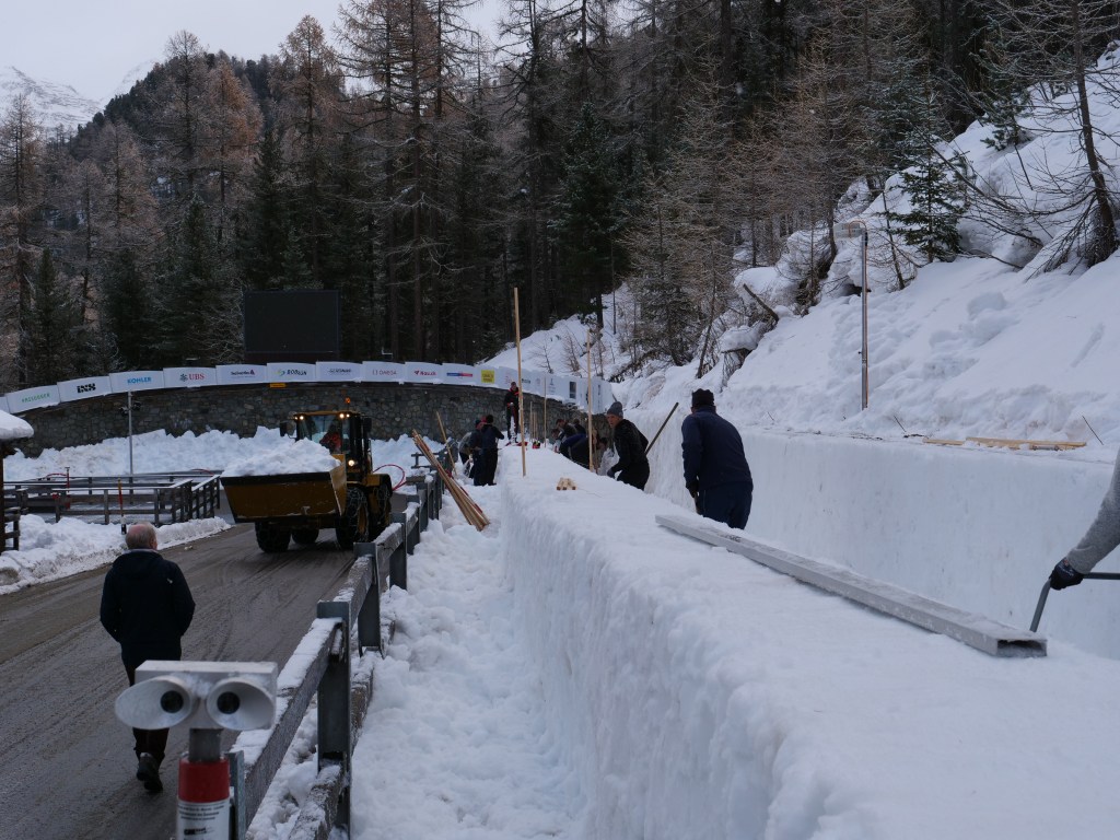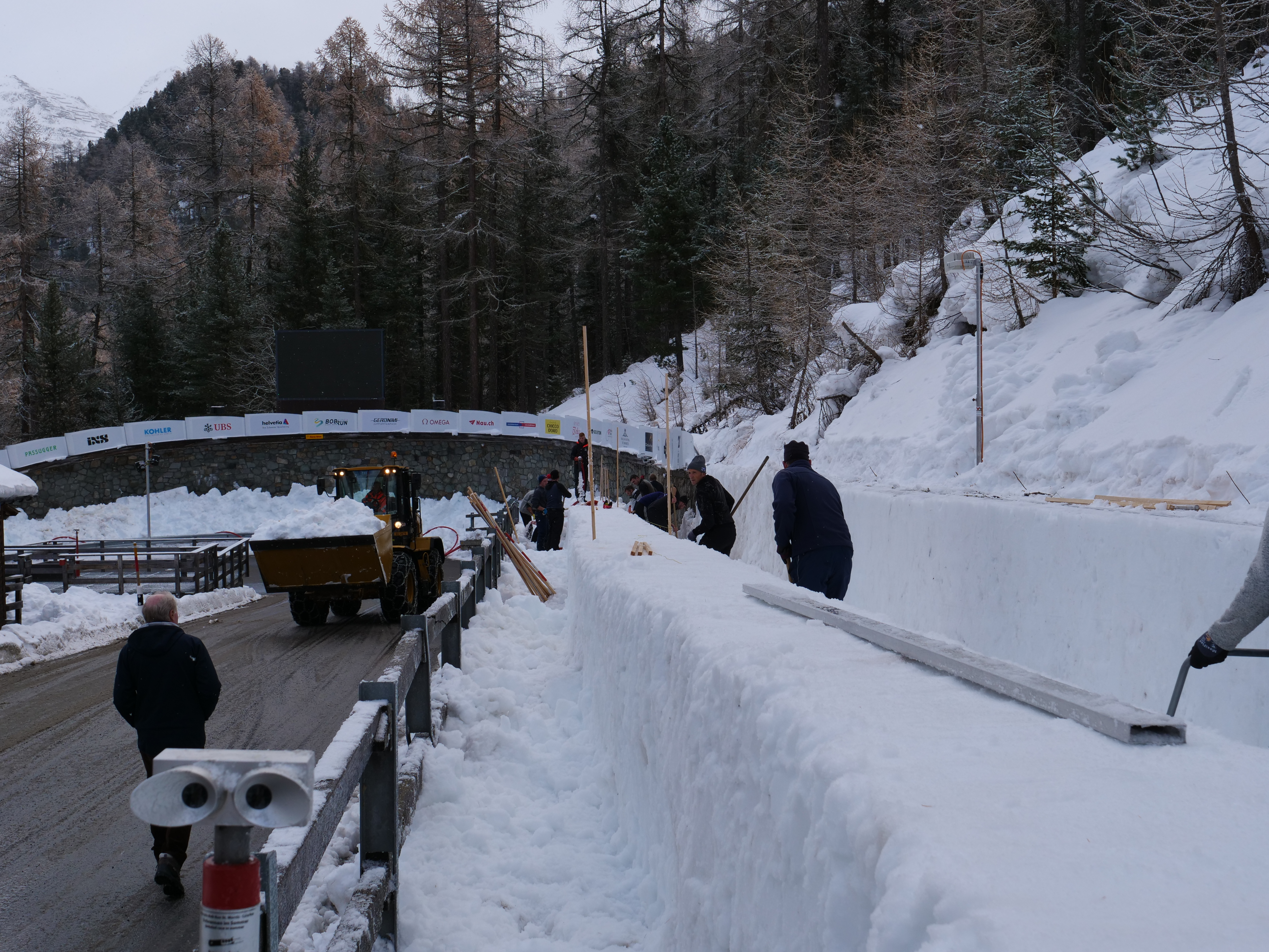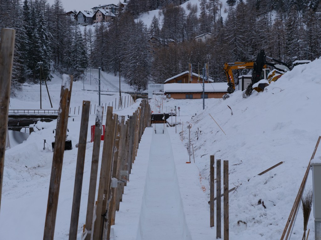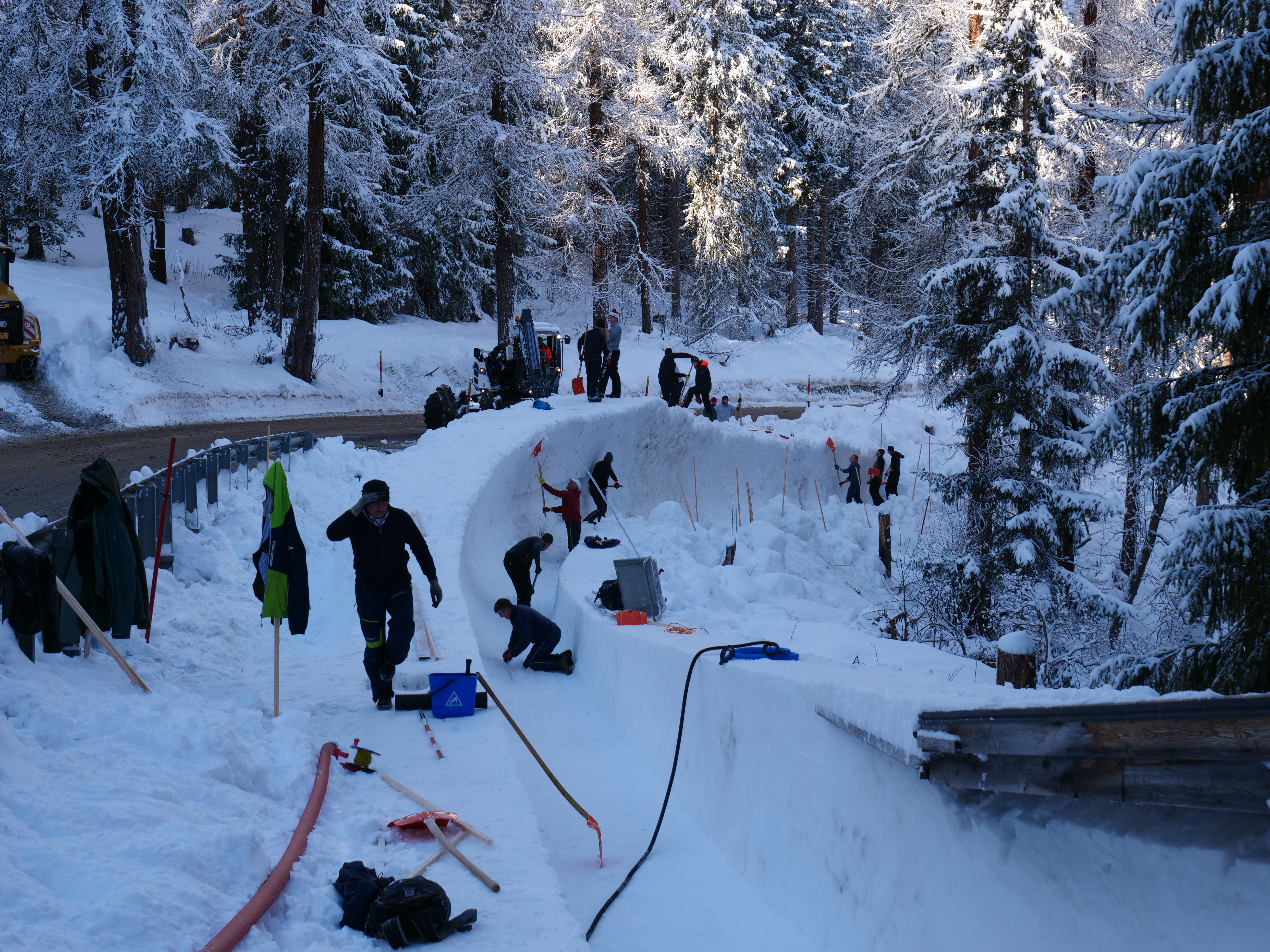 Bien évidemment, des ajustements de la piste ont été réalisés à plusieurs reprises depuis les jeux de 1948, notamment dans les quatre derniers virages, pour ajuster la sécurité et étendre les zones de freinage, avec le souci de s’adapter aux vitesses plus élevées atteintes par les bobs. Entièrement naturelle, la piste est reconstruite chaque hiver par la même équipe de bâtisseurs venue du Sud-Tyrol, qui utilise 15’000 mètres cubes de neige et 10’000 mètres cubes d’eau. La construction de la piste commence généralement autour du dernier vendredi de novembre et dure trois semaines, pour l’équipe de quinze ouvriers. La construction de la piste suit plusieurs traditions et une division du travail très stricte. Ainsi, elle démarre traditionnellement après le virage Sunny, se dirigeant ensuite vers le bas de la piste, pour finalement finir avec le haut de la piste à toute fin. Cependant, même après l’achèvement de la piste, le travail n’est pas terminé et l’équipe des bâtisseurs passe tout l’hiver – divisée en plusieurs petites équipes responsables de leur partie de la piste – à entretenir la piste de manière quotidienne.