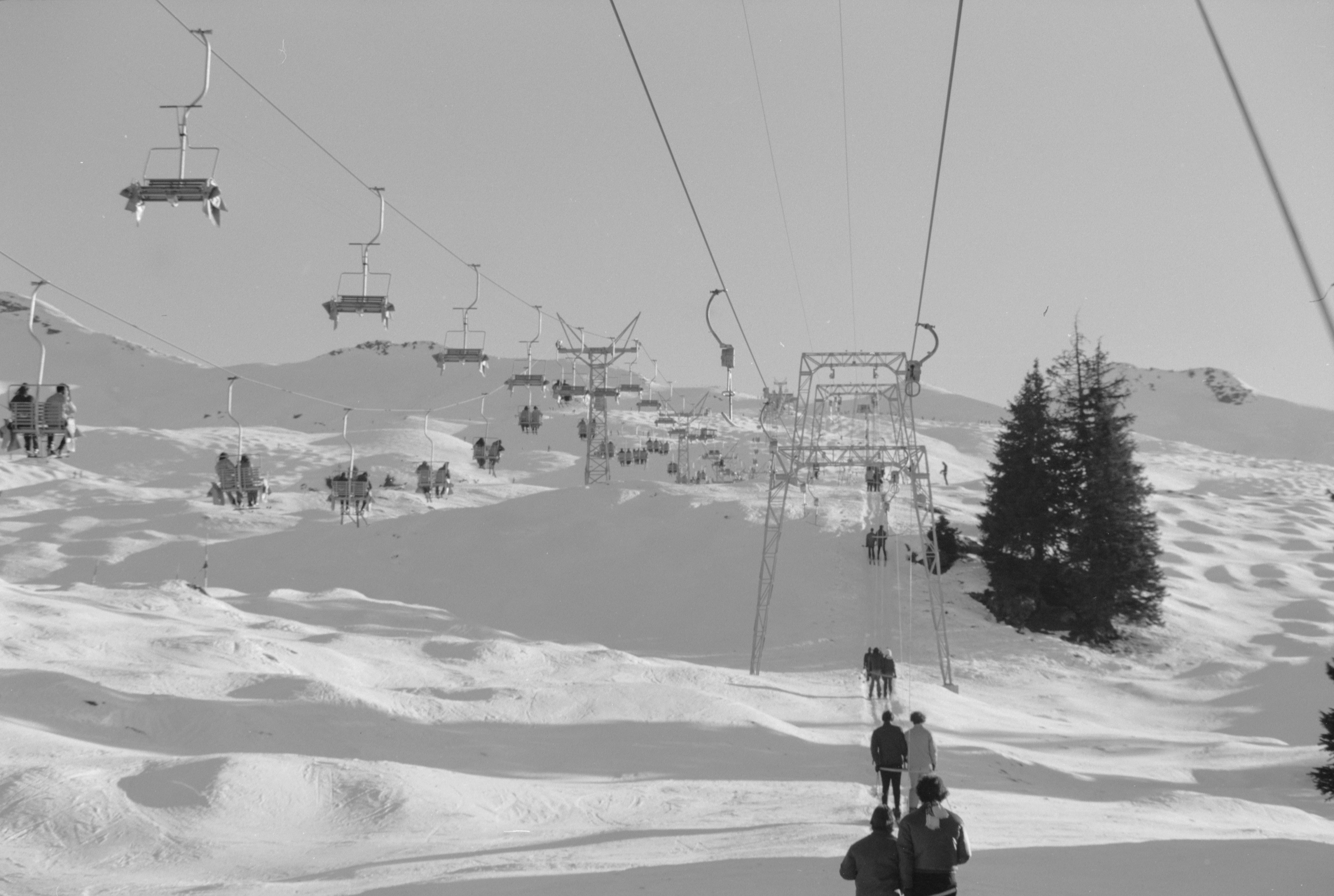 Domaine du Hoch-Ybrig (canton de Schwyz), téléski et télésiège, 1972 © ETH-Bibliothek Zürich, Bildarchiv, Photographe Jules Vogt
