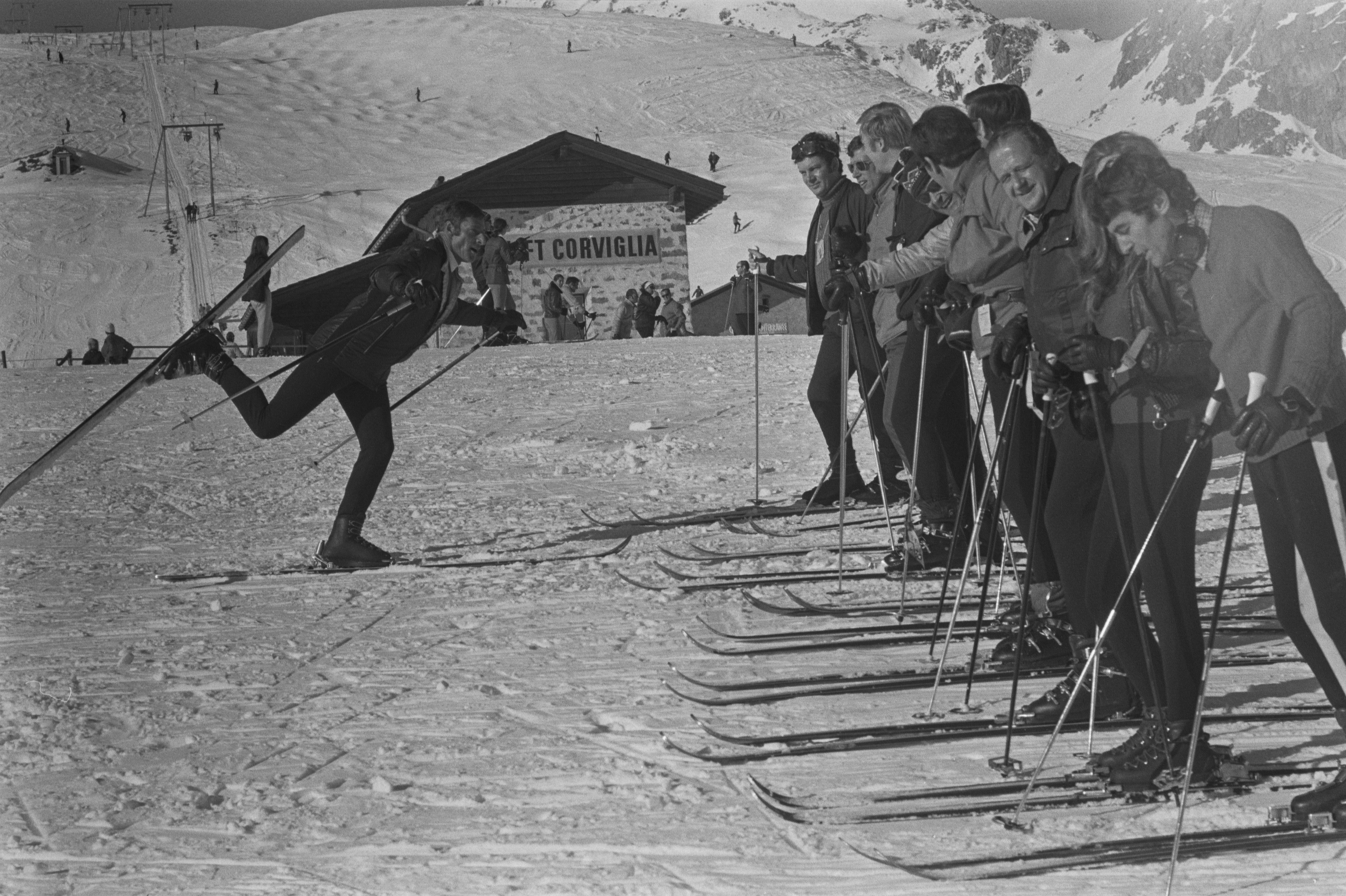 Après le sommeil forcé induit par la guerre, dans les années 1950 et 1960, le ski va véritablement se hisser au rang de « sport national », à travers les résultats des athlètes d’élite, mais surtout par l’accroissement de la pratique hiver après hiver, leçons après leçons, abonnements après abonnements, que celle-ci soit le fait d’autochtones ou de touristes étrangers. Depuis les vallées les plus reculées des Grisons jusqu’au pentes plus douces du Jura, il n’y a pas un hiver dont les chiffres indiquent un recul de la pratique par rapport à l’année précédente. Il faut tout au plus quelques épisodes météorologiques extrêmes – comme lors de l’hiver 1950-1951 où des chutes de neige très fortes (4 à 5 mètres en quelques jours) occasionnent des avalanches qui font plusieurs centaines de morts dans le massif alpin – pour ralentir l’essor du tourisme à ski. Malgré ces imprévus, la croissance est l’unique boussole des promoteurs du tourisme… les refrains venus de Suisse-allemande le disent d’ailleurs avec force et insistance « Tout le monde fait du ski » !