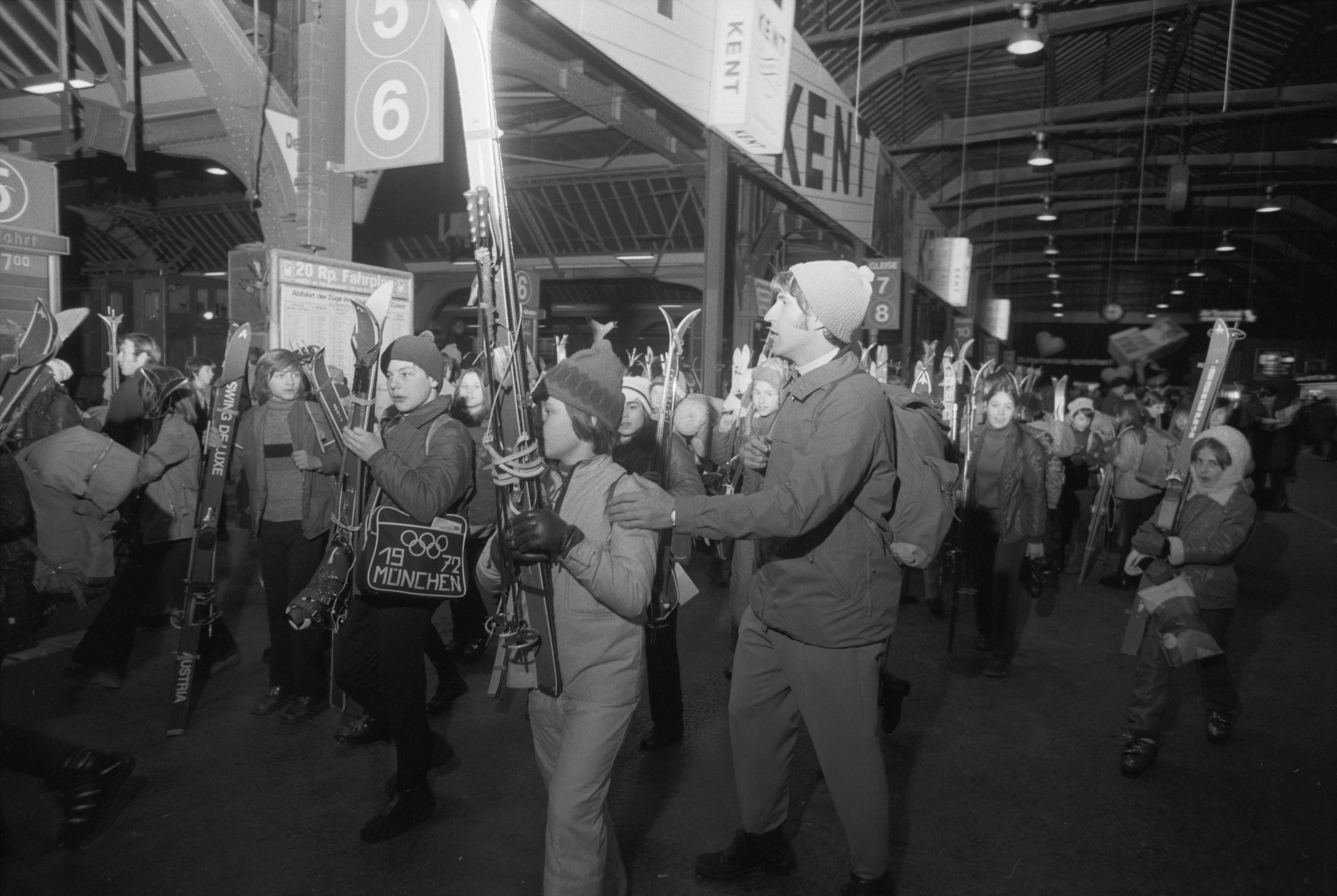 Affluence des grands jours à la gare de Zurich, départ des camps de ski, 1973 © ETH-Bibliothek Zürich, Bildarchiv / Fotograf: Schmid, Josef / Com_L22-0060-0001-0006
